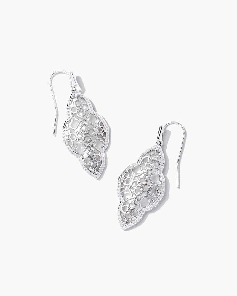Celebrate 10 years of our signature logo, reimagined in the elongated frame of the Abbie Drop Earrings in Silver. Representing joy, optimism, possibility, and femininity, our iconic medallion shape, along with etched frame, are a nod to iconic Kendra Scott design.