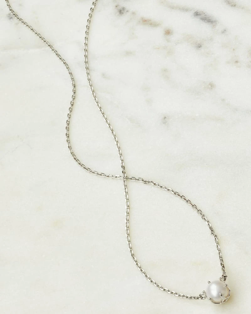 Subtle but still able to make an impression, the Arya Silver Pendant Necklace in White Pearl features a minimal cultured freshwater pearl for a timeless effect. Perfect for layering or styling on its own, this stunning pendant brings a new sense of sophistication to all your stylish occasions. This necklace is a part of our second limited-edition Kendra Scott + Emily Travis from @champagneandchanel collection and was named after one of Emily’s nieces.