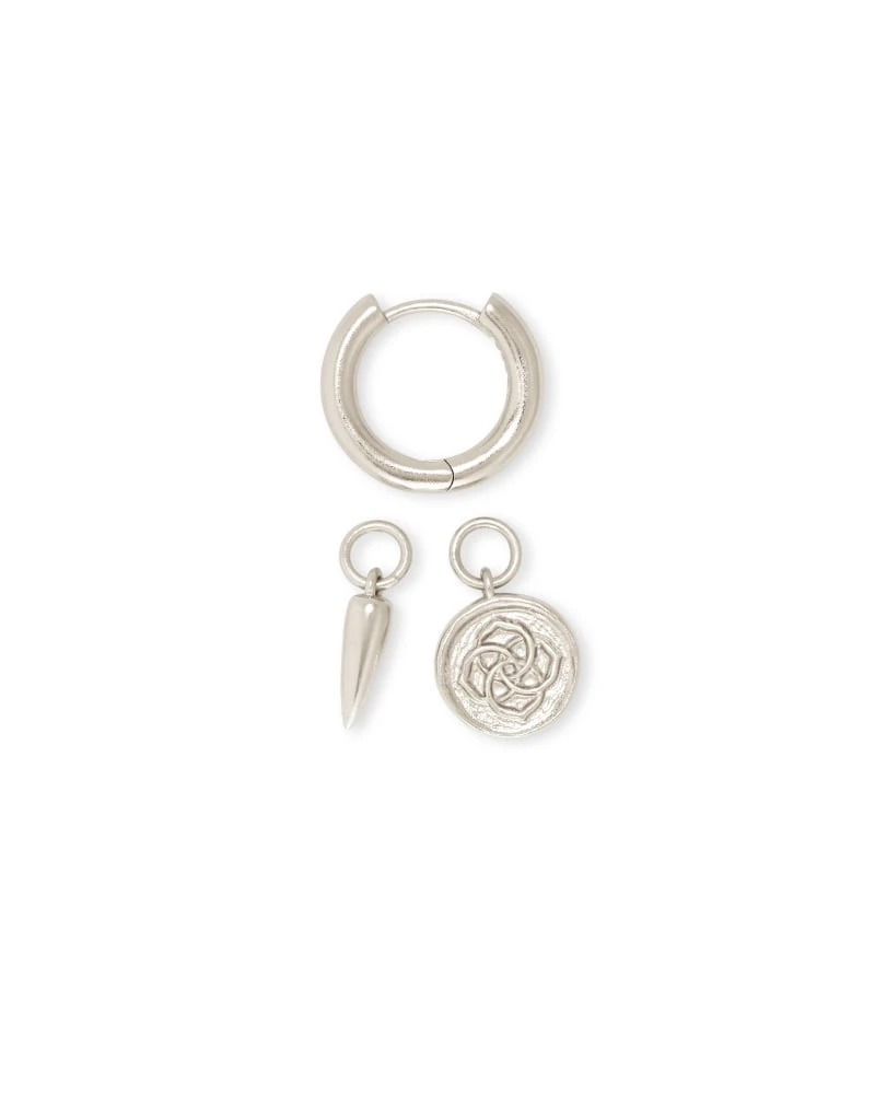 Set includes 2 Huggie Earrings (1 pair) and 4 removable Charms