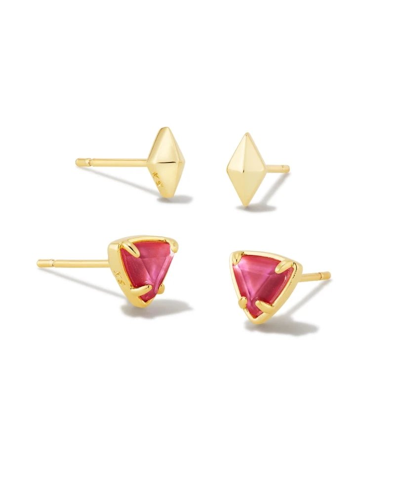 Say hello to your new favorite duo. Featuring a beautiful stone-inlaid stud and a sleek all-metal stud, the Greta Gold Stud Earring Set of 2 in Magenta Illusion are a stackable earring dream team.