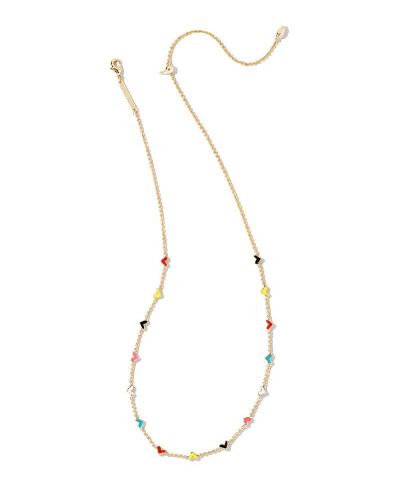 Hand painted hearts dot the Haven Heart Gold Strand Necklace in Multi Mix. Playful with plenty of charm, add to your collection of colorful favorites.