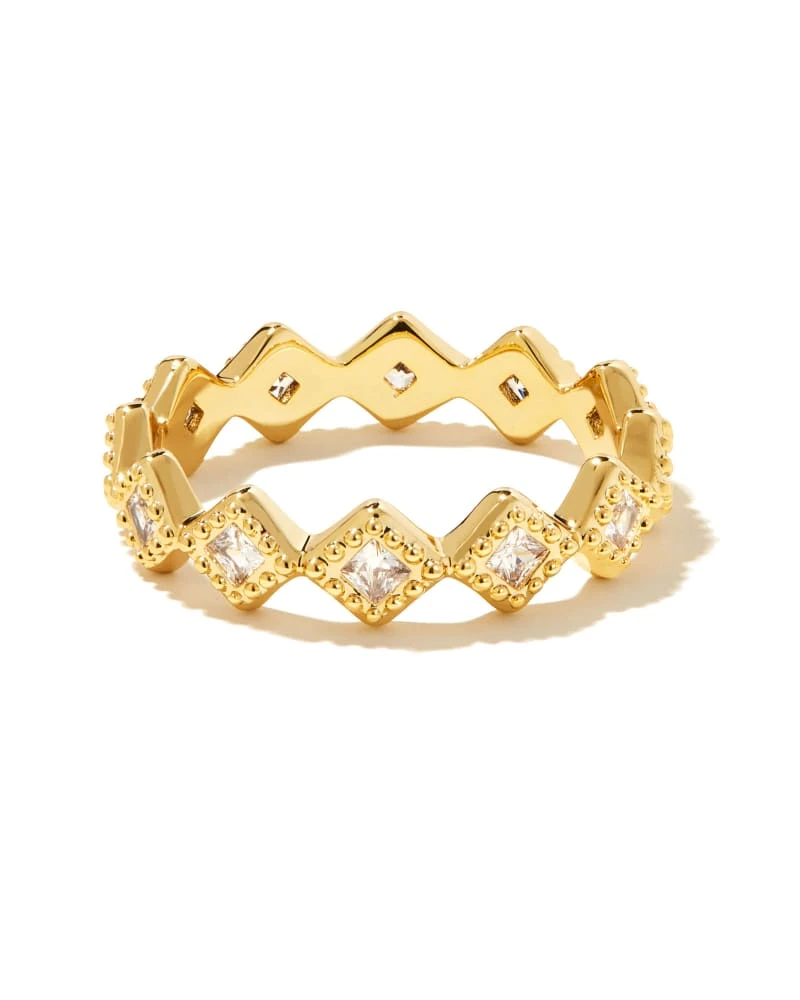 Let this sparkly stunner become the most regal addition to your ring collection. With its interlocking, diamond-shaped white crystal band, add some flair to your stack–and shimmer to your style–with the Kinsley Band Ring.