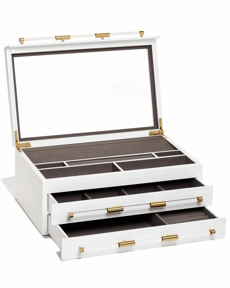 Please note: Never use cleaner with alcohol or household solvents as they may damage the surface and finish. Extreme fluctuations can cause wood boxes to crack and lacquer and finishes to lift. Please avoid putting item in the bathroom.