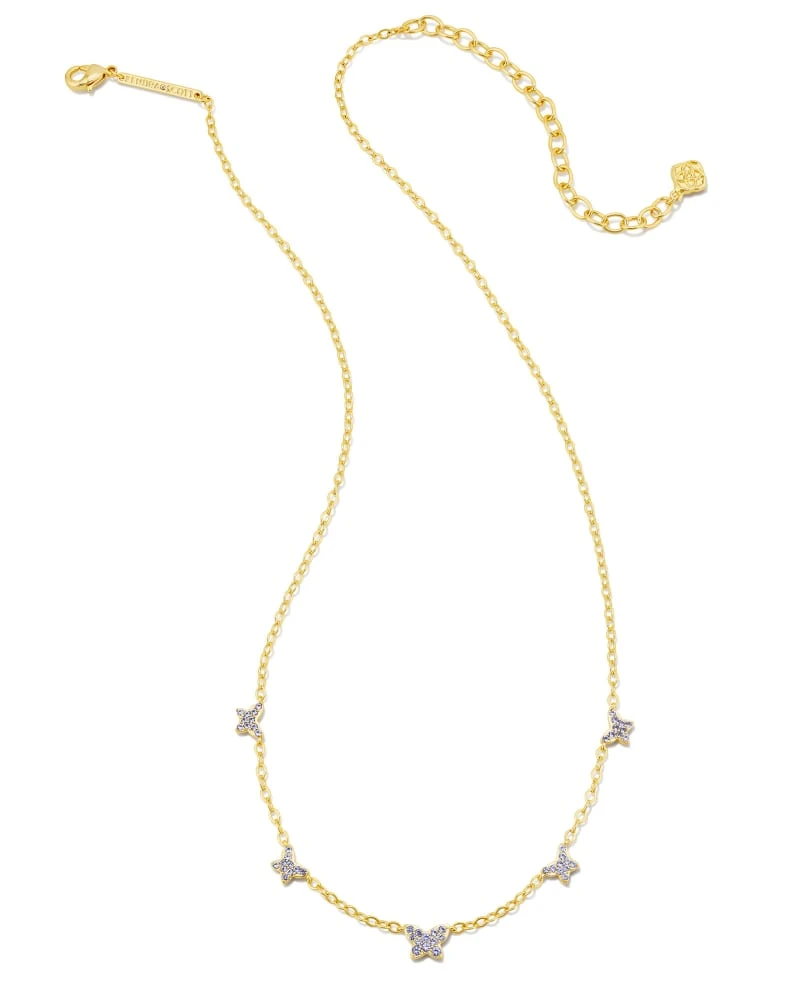 Add a sweet bit of sparkle to your necklace collection with the Lillia Crystal Butterfly Gold Strand Necklace in Violet Crystal. Featuring multiple crystal butterflies on a dainty chain, this necklace pairs perfectly with your other layers or can fly on its own.