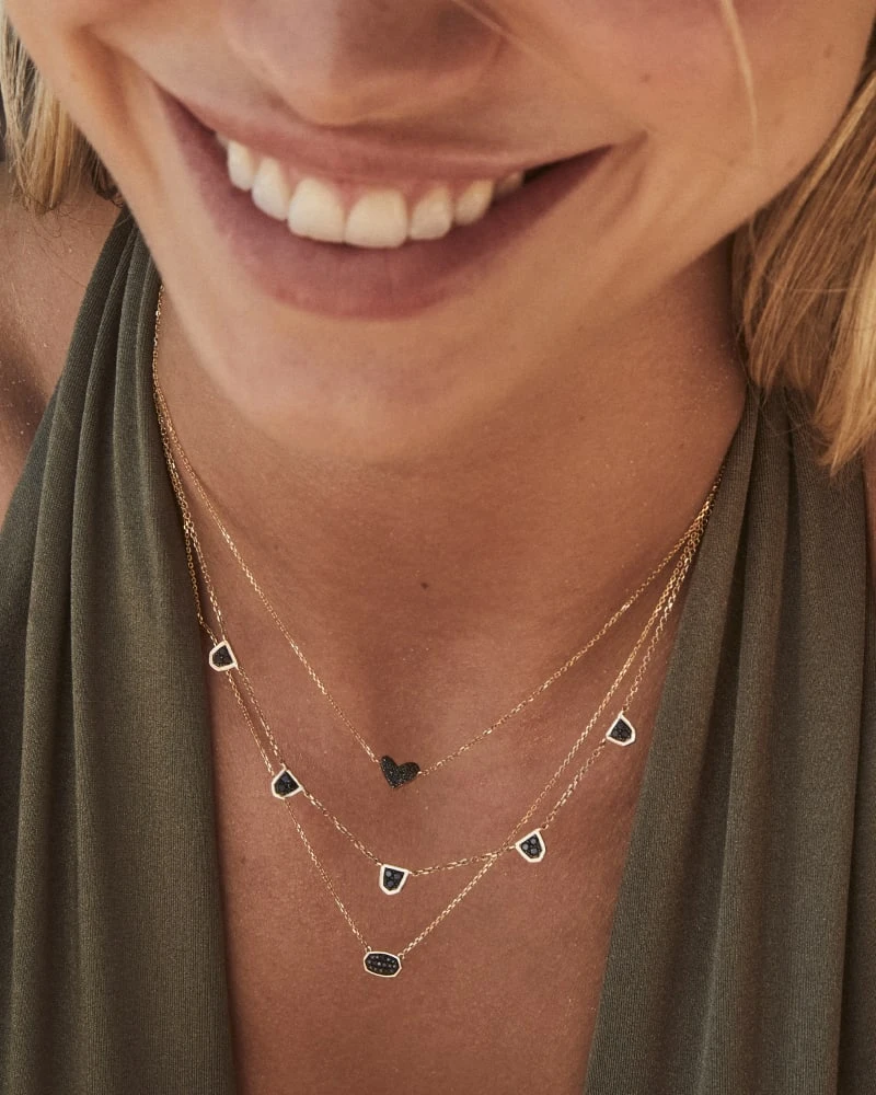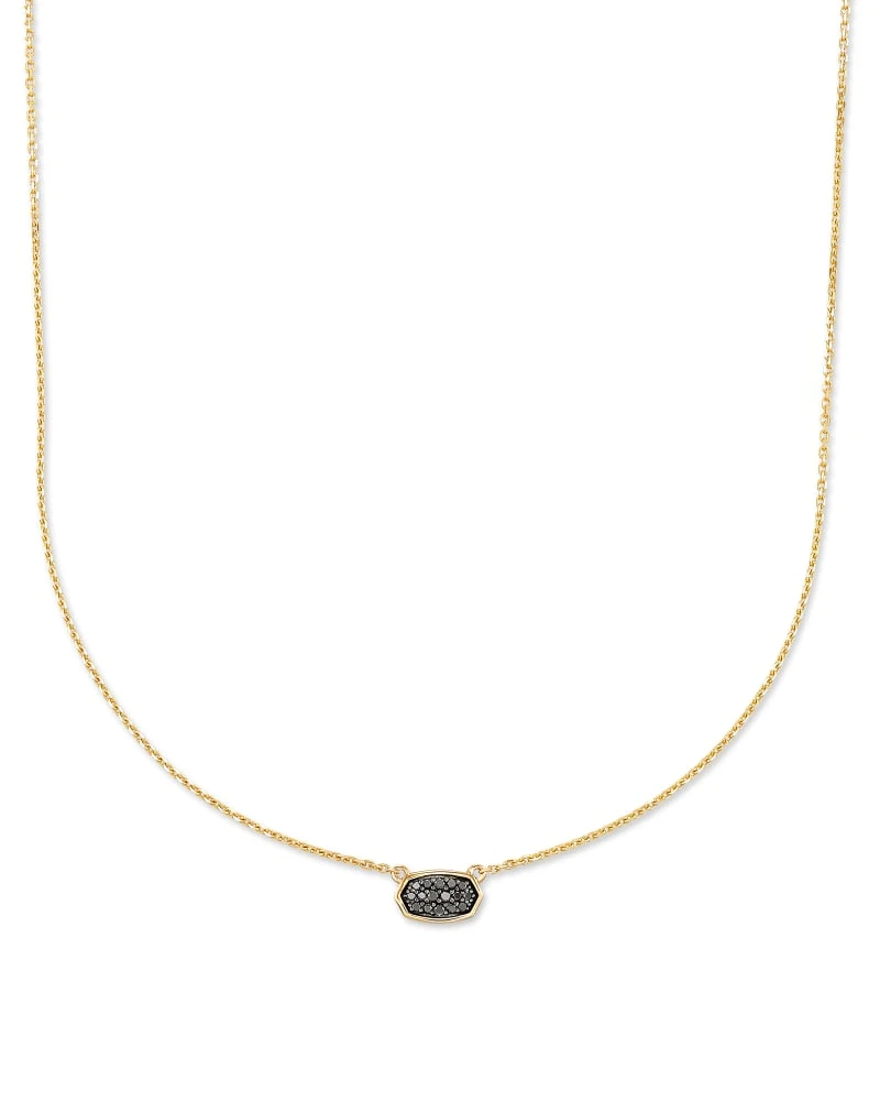 0.2″L x 0.12″W stationary pendant, 15″ chain length with a 2″ extender with a spring ring clasp