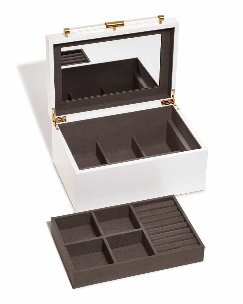 Please note: Never use cleaner with alcohol or household solvents as they may damage the surface and finish. Extreme fluctuations can cause wood boxes to crack and lacquer and finishes to lift. Please avoid putting item in the bathroom.