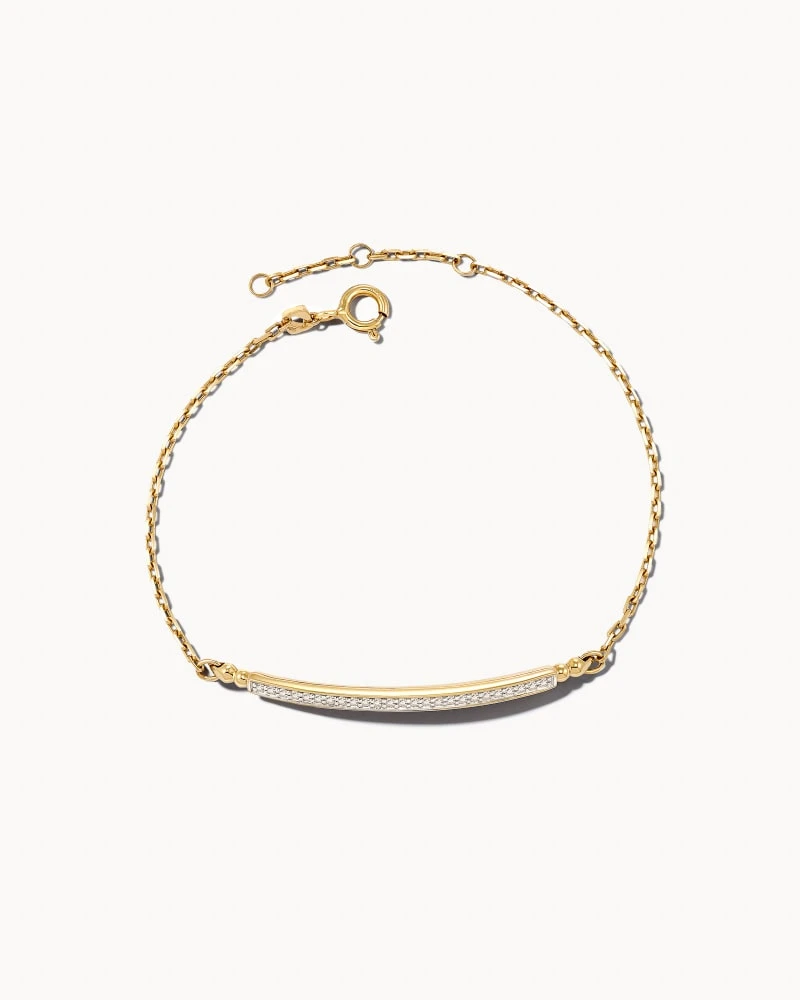 A classic now dusted in channel set diamonds, each one hand selected and placed. The Ott 14k Yellow Gold Delicate Bracelet in White Diamond is a delicate stack statement, and the keepsake we all wish to wear or inherit.