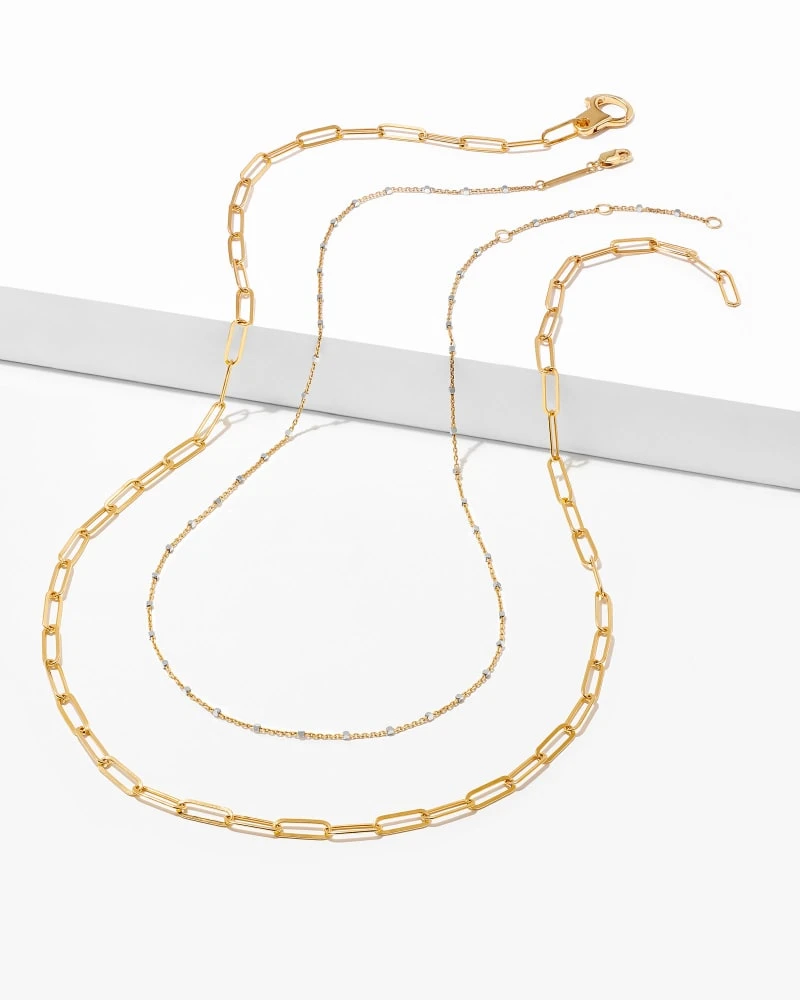 Set includes: the Single Satellite Chain Necklace and the Large Paperclip Chain Necklace.